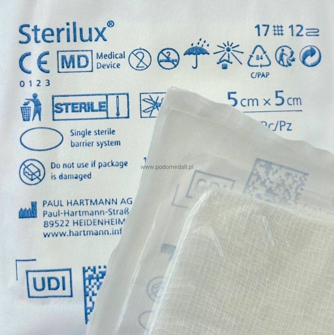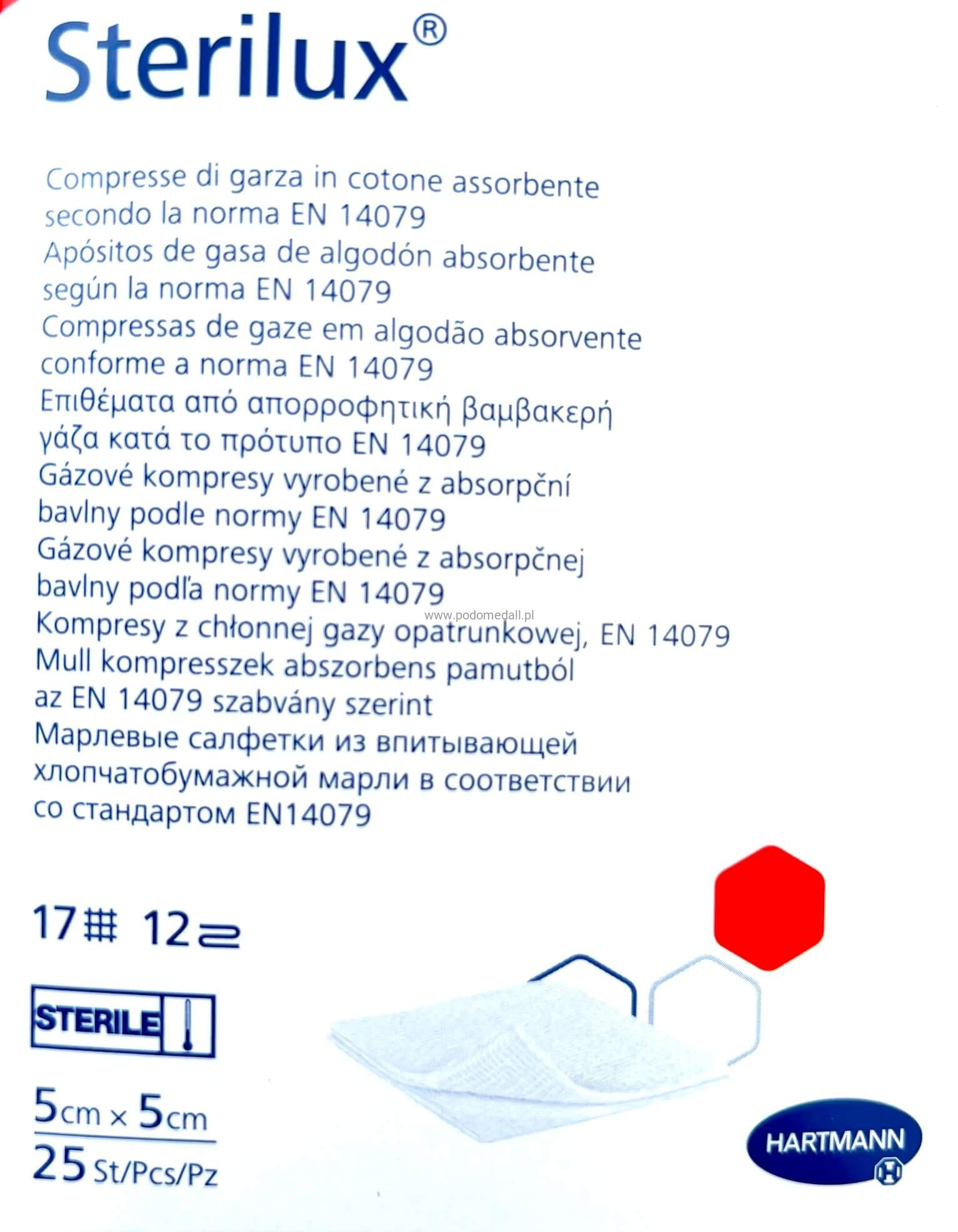 Kompresy jałowe STERILUX , 5x5 cm 12 warstwowe, gazowe, 17 nitkowa, Hartmann, opakowanie 25szt